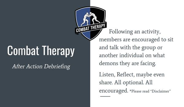 Through a combination of high intensity workouts, combat sports and a bond forged by various traumas, Combat Therapy creates an environment that brings individuals together to work it out, then talk it out.
